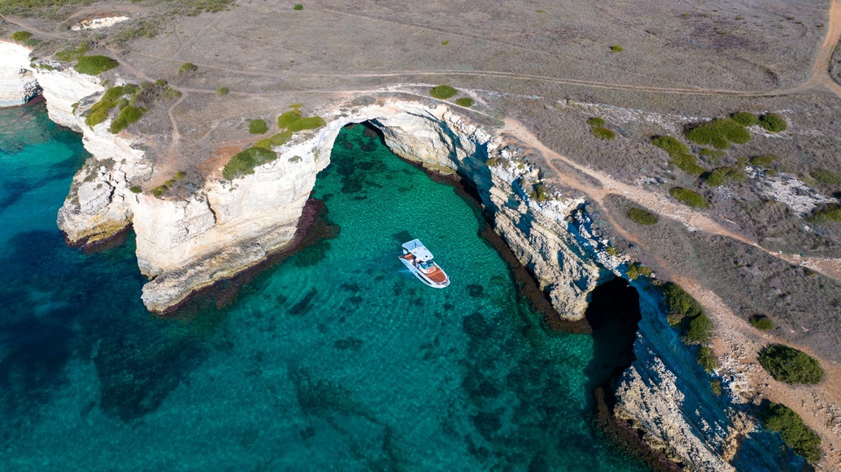 Located at the easternmost edge of Italy, Otranto is one of Puglia’s most captivating seaside towns. Facing the Adriatic Sea and just a short distance from Albania, this historic port has long been a crossroads of cultures and maritime routes. Today, its crystal-clear waters, dramatic rocky coastline and hidden coves make it one of the most spectacular places in the region to explore by boat.