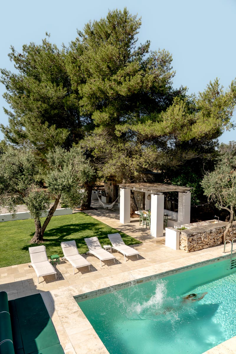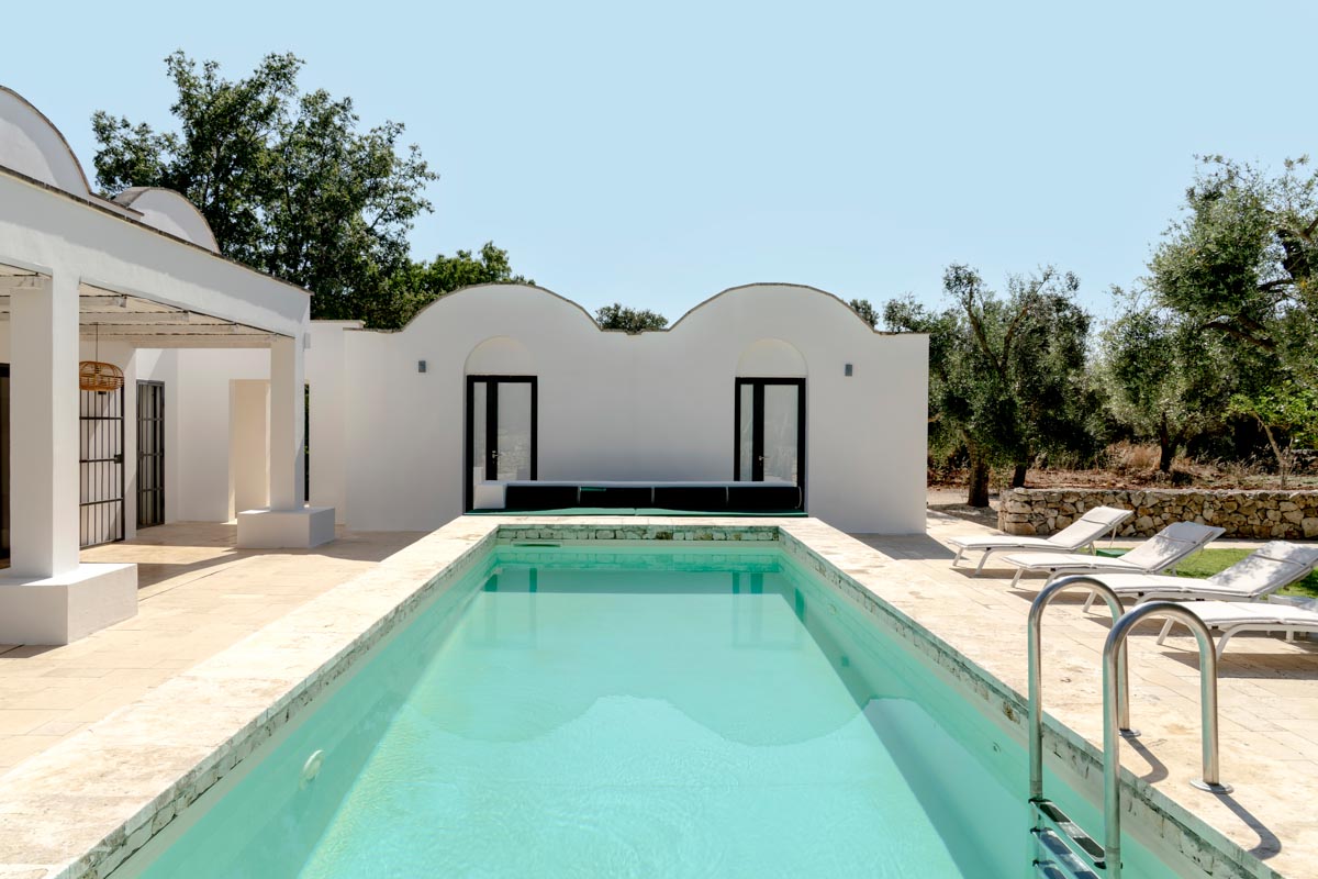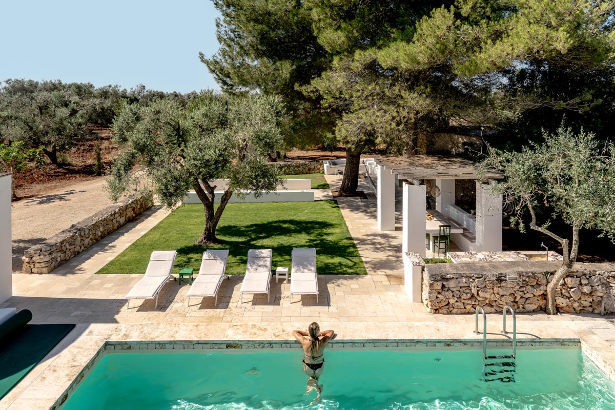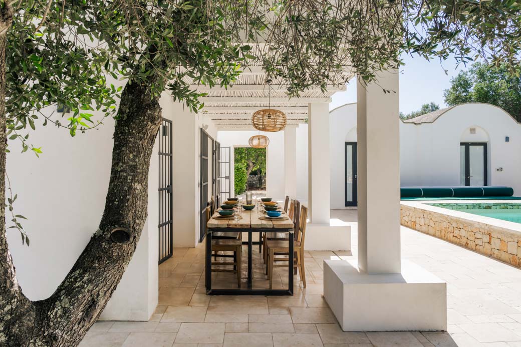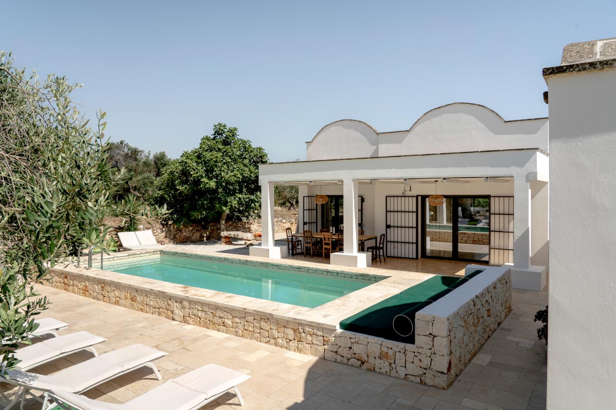 Casa Mamita is a peaceful, unique retreat nestled among olive groves, just 6 km from Ostuni. The property consists of two lamias and a trullo, accommodating up to 10 guests in five comfortable bedrooms, each with a private bathroom.