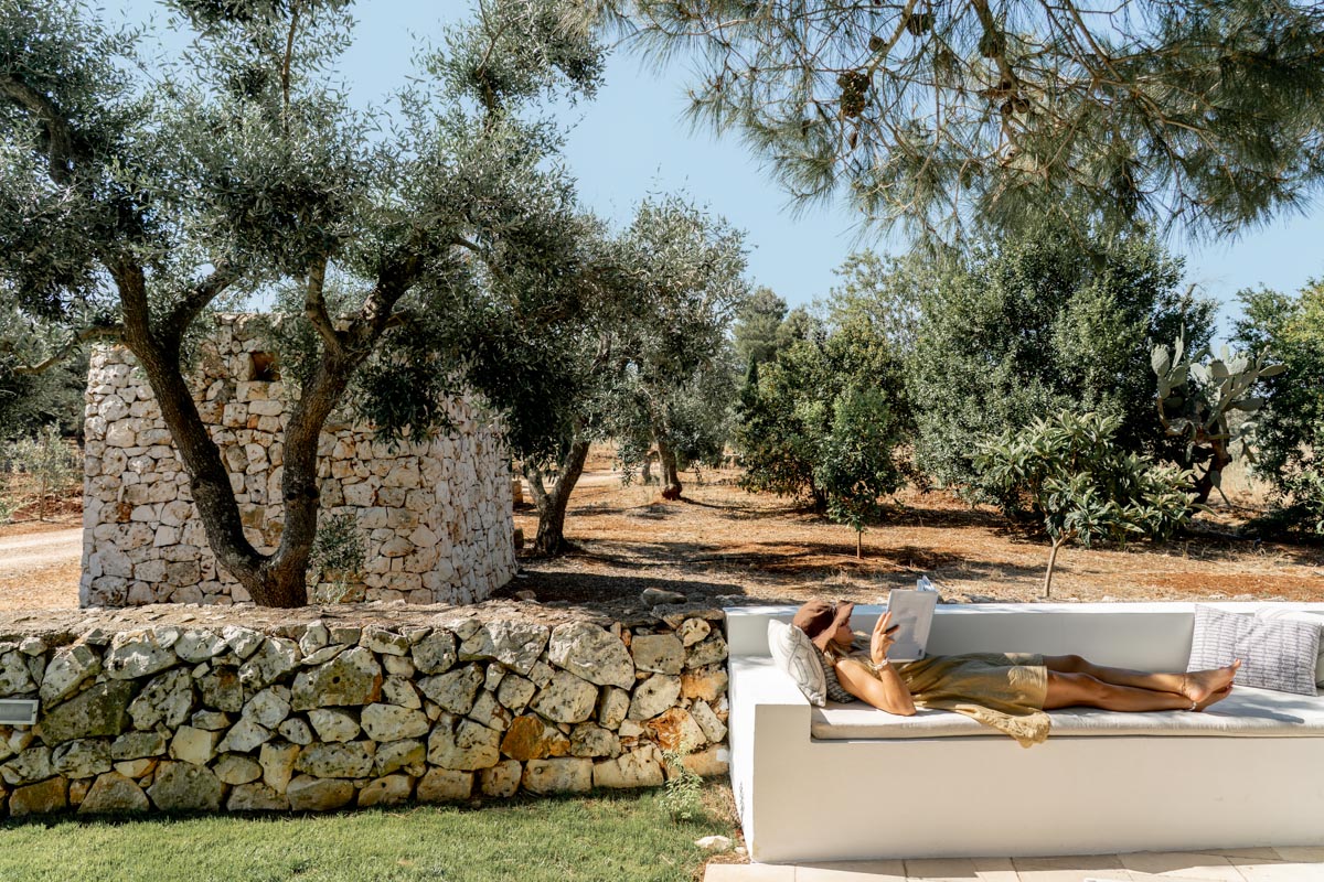 The rooftop terrace on the main building provides comfortable seating and breathtaking views of the Puglian sunsets. At night, the starry sky is truly mesmerizing.