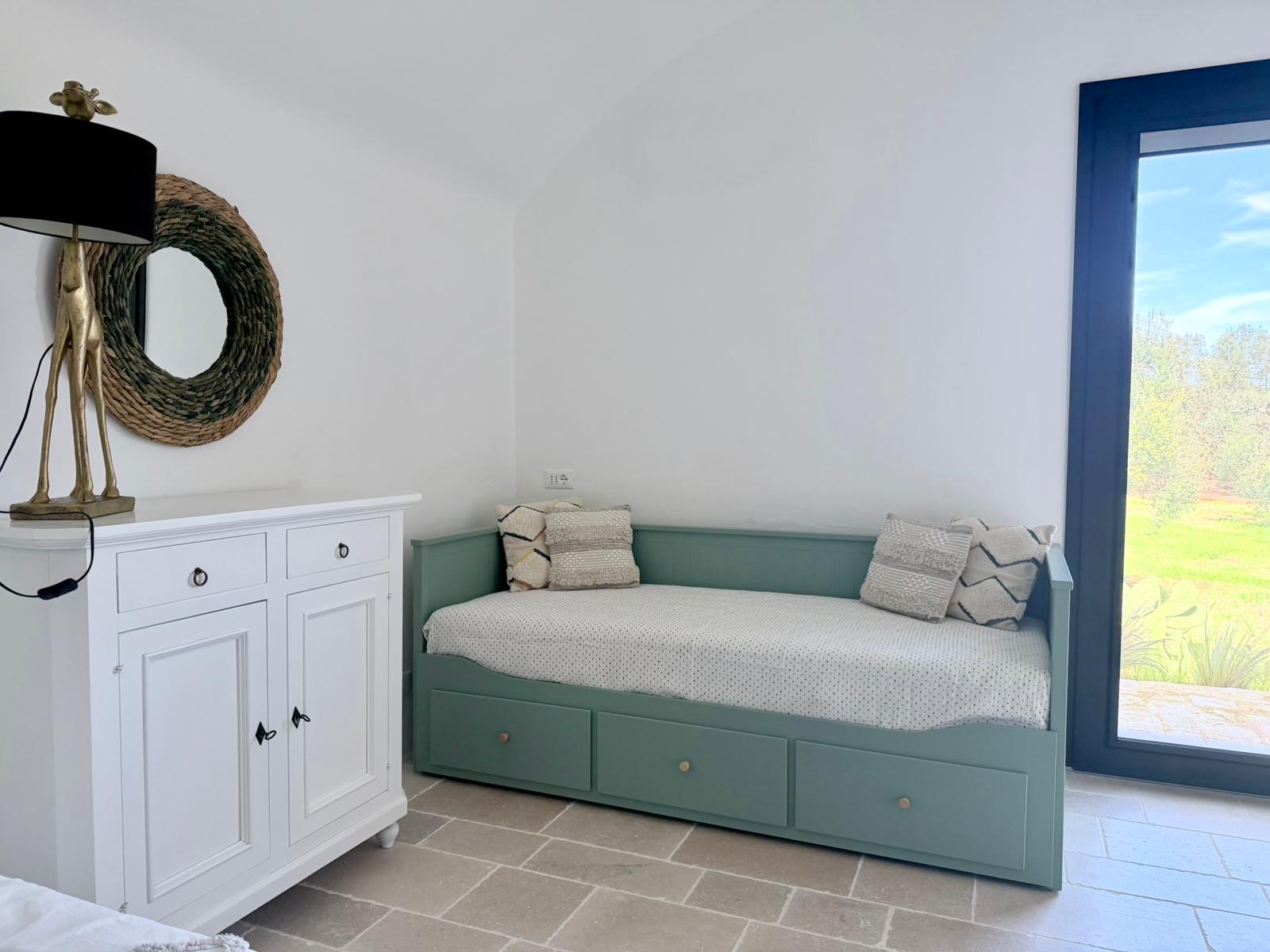 Villa Emma is beautiful property located only 10 min. drive from Ostuni, surrounded by olive groves and fruit trees. The perfect place for families or group of friends, thanks to 5 comfortable bedrooms with 5 bathrooms, for total of 12 beds. Villa is equipped with all comforts such as: wifi, air conditioning, wine fridge, coffee machine, washing machine, decent size swimming pool (15 x 6 m.) and a sauna.