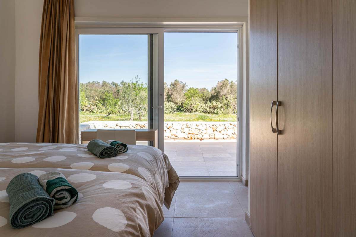 Distance to Carovigno 7 km, Serranova 3 km, Specchiolla 5 km, San Vito dei Normanni 7 km, Ostuni 14 km, Brindisi 24 km Distance to the sea (<5km): 10 minutes cycling, 40 minutes walking, 5 min car drive.