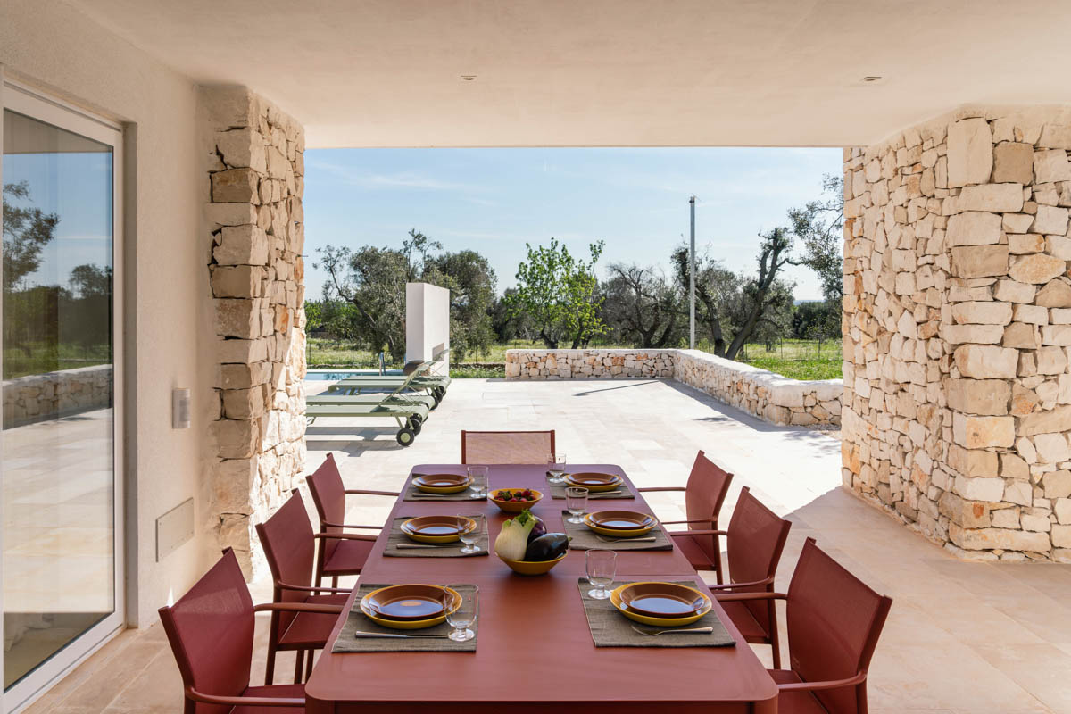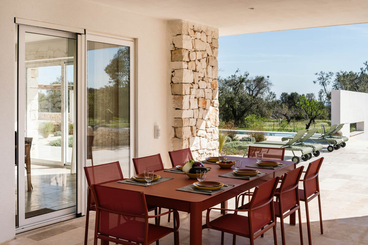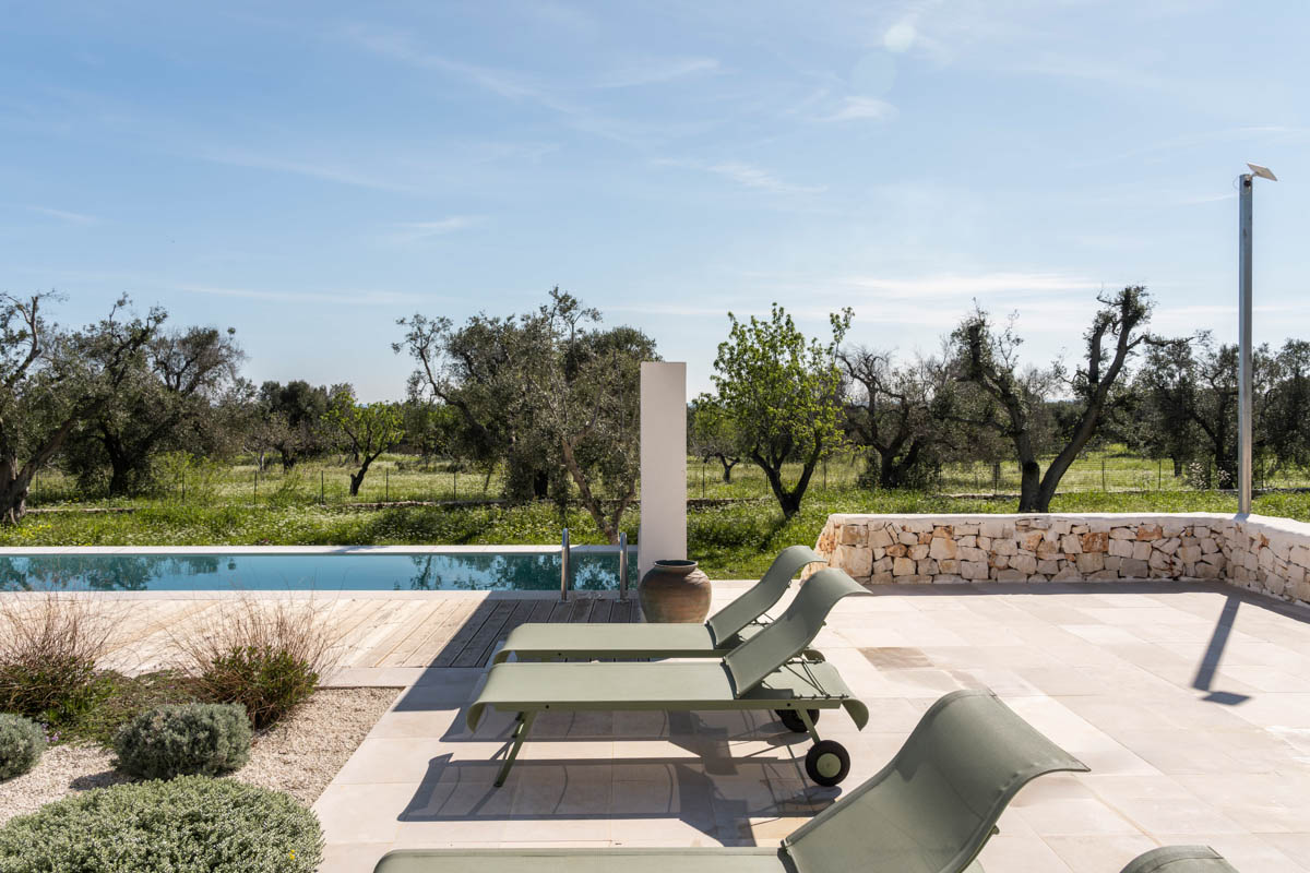 Villa Serena is a sleek, luxurious, contemporary design villa with infinity pool, 3 bedrooms with ensuite bathrooms, sea views and ample outside living areas. The villa is situated in a secluded, very tranquil location of Carovigno, surrounded by olive & almond trees, ficchi d’india and an enchanting trullo. It’s equipped with all comforts like air condition, latest kitchen appliances, heated pool, outdoor bbq and security system. Additionally, the villa is furnished with iconic design objects such as the Barcelona armchairs designed by Marcel Breuer, classics danish lamp by Louis Poulsen or Fermob outdoor furnitures & sun beds. A highlight for all design lovers!