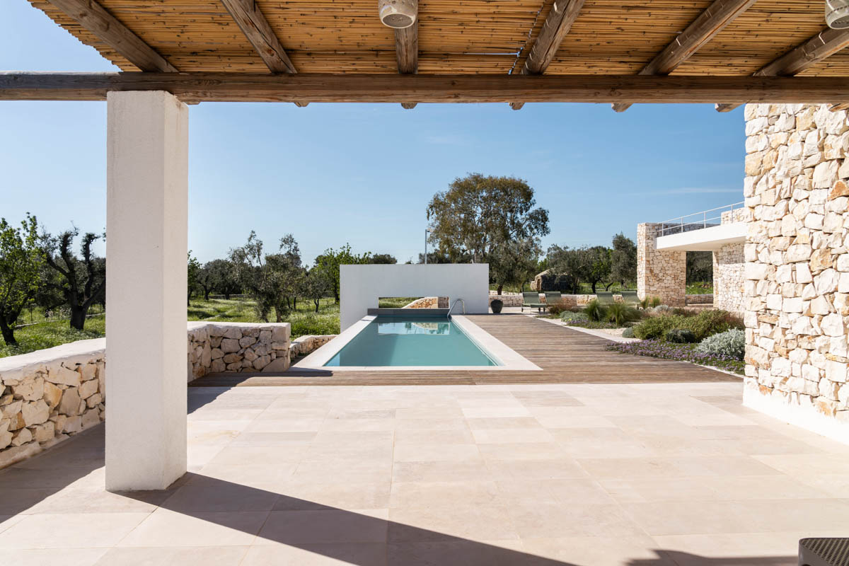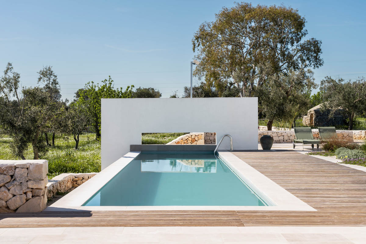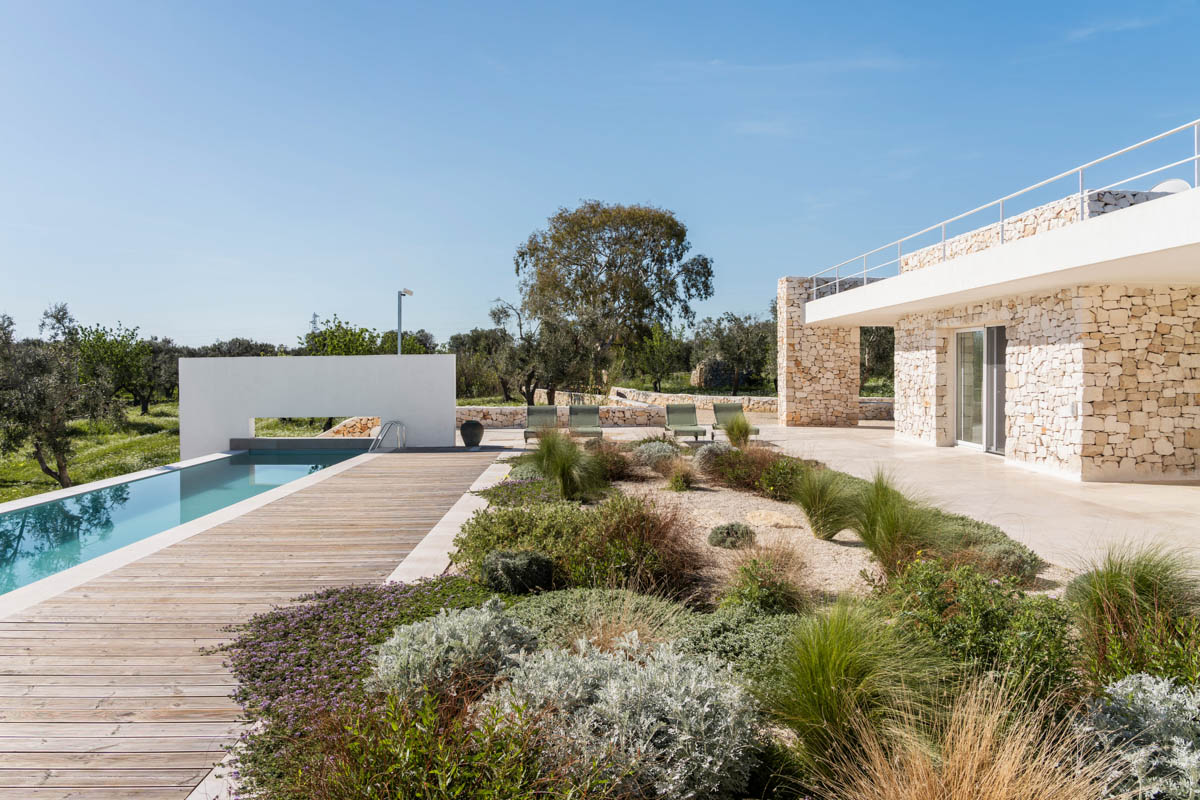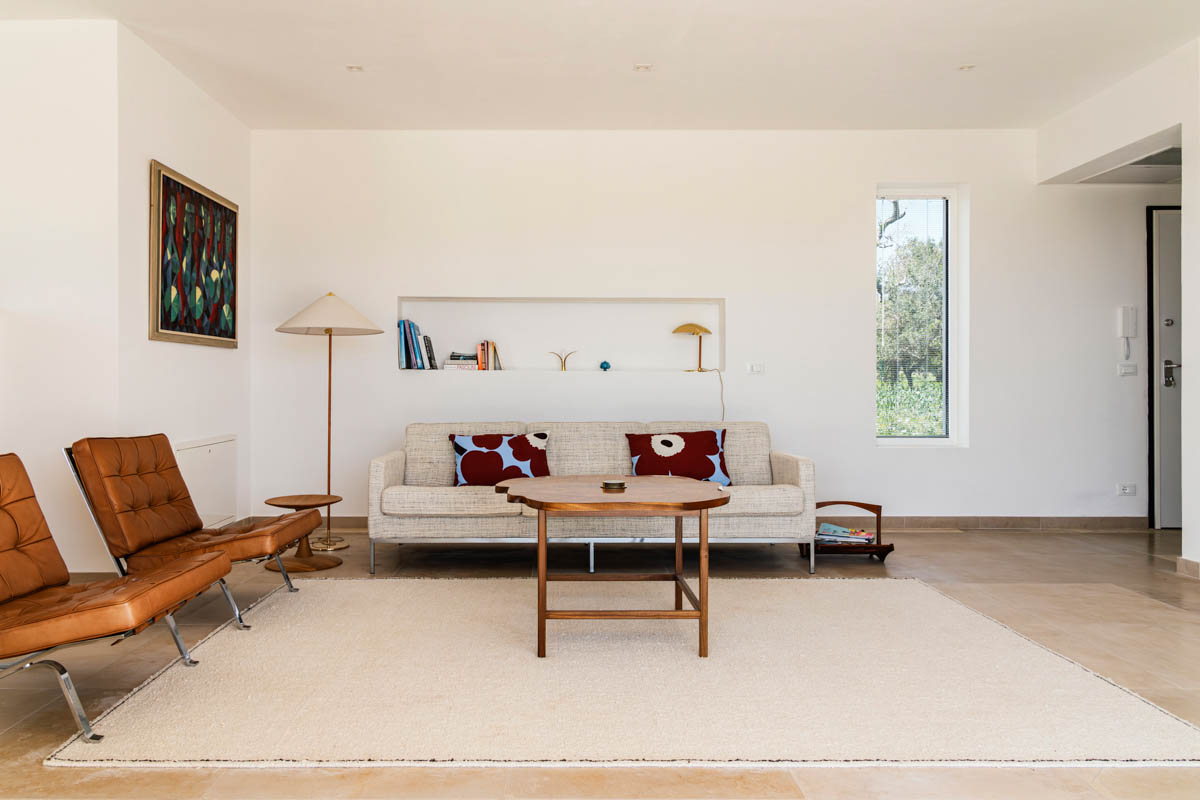 Villa Serena is a sleek, luxurious, contemporary design villa with infinity pool, 3 bedrooms with ensuite bathrooms, sea views and ample outside living areas. The villa is situated in a secluded, very tranquil location of Carovigno, surrounded by olive & almond trees, ficchi d’india and an enchanting trullo. It’s equipped with all comforts like air condition, latest kitchen appliances, heated pool, outdoor bbq and security system. Additionally, the villa is furnished with iconic design objects such as the Barcelona armchairs designed by Marcel Breuer, classics danish lamp by Louis Poulsen or Fermob outdoor furnitures & sun beds. A highlight for all design lovers!